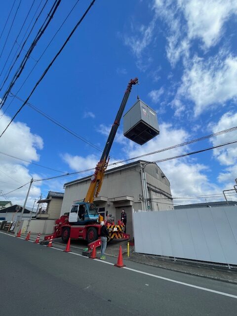 土曜日はキュービクル撤去工事へ キュービクル=高圧受電 6600Vで受電して100Vと200Vへ変圧 それぞれに電気を送っていく箱体なんです