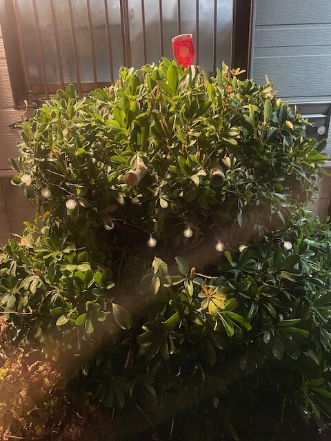 頭と首飾りをつけてもらっています Happy Holidays! 今日もヨロシク...